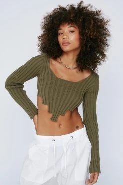 Top it off. Feel cute in our long sleeve crop tops, made in high quality ribbed fabric, with a fun asymmetric print and cozy long sleeves. Style with jeans or cargo pants for an elevated look which will take you from office days to date days and brunch dates.