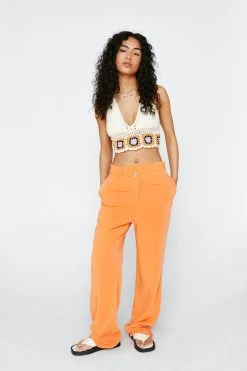 Be bold. Style with a crochet crop top, and flat thong sandals.
