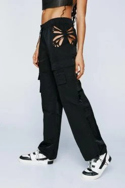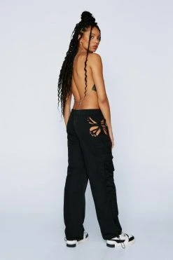 Fly away. Feel ready to seize the day in our cargo pants, with a statement butterfly cut out on the hips, and a flattering straight leg design. Pairs well with crop tops and sneakers for a look that will take you anywhere from casual days out with the girls to shopping trips, to festival weekends and gig nights.