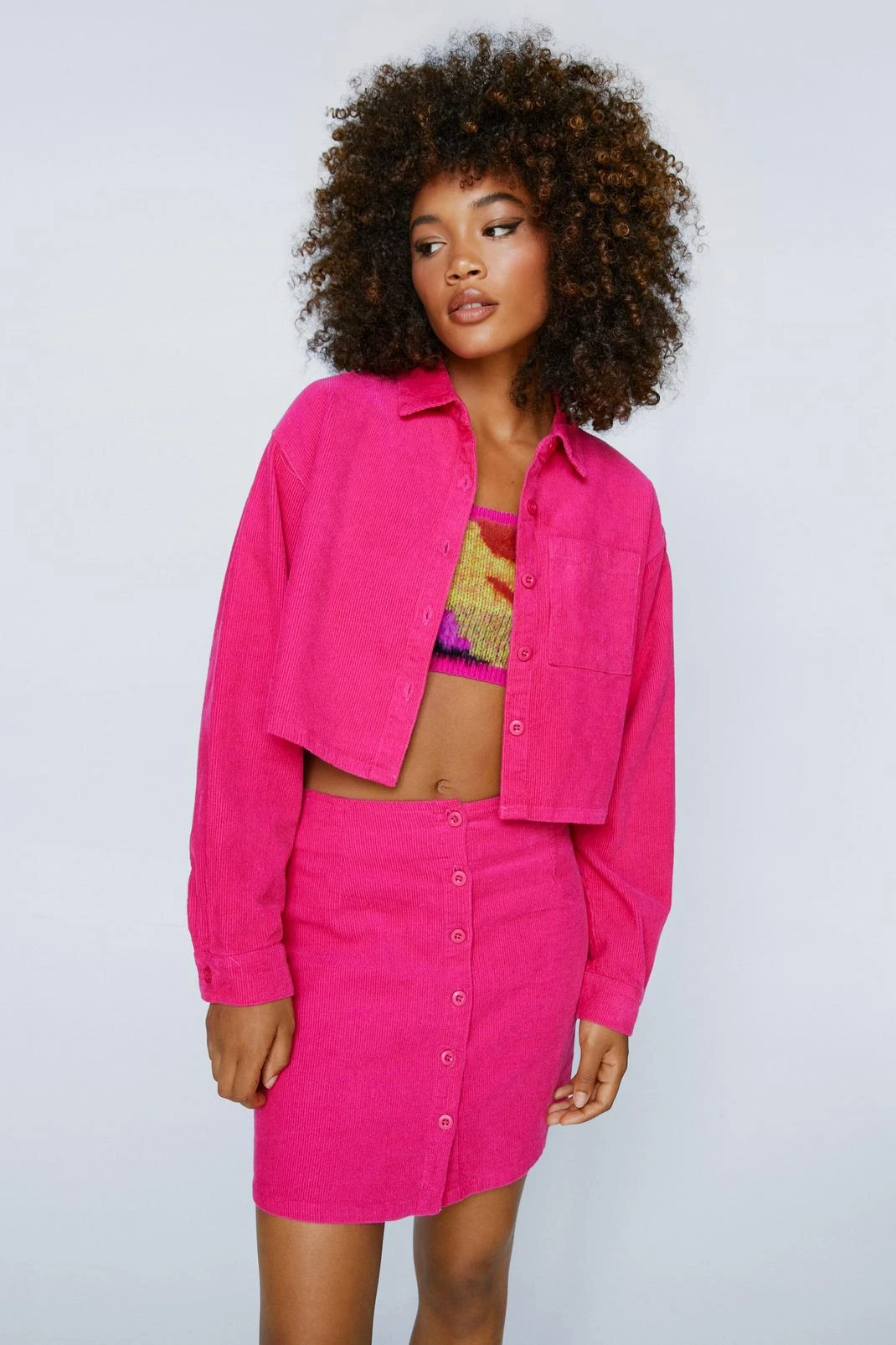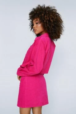 - Cord Cropped Collared Shirt with Pocket
