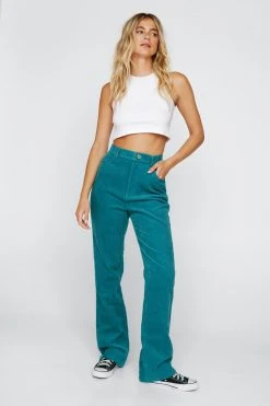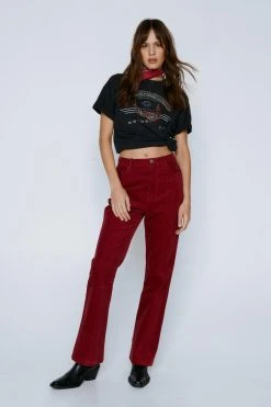 Star of the show. These pants come in corduroy and features a high waisted, flared silhouette, belt loops, zip fly closure, contrasting star design at back, and seam detailing. Style yours with a cropped top and chunky biker boots.