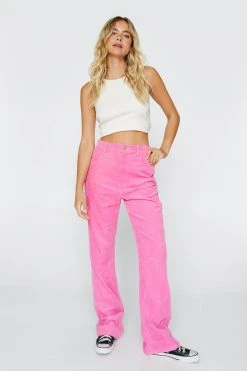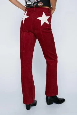Star of the show. These pants come in corduroy and features a high waisted, flared silhouette, belt loops, zip fly closure, contrasting star design at back, and seam detailing. Style yours with a cropped top and chunky biker boots.