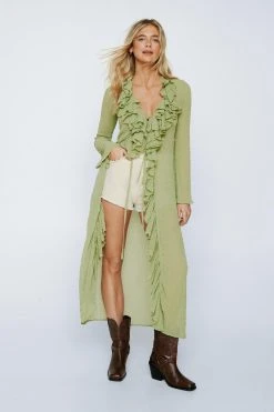 Make a statement. Feel confident in our maxi top, with a universally flattering flared silhouette, ruffle detailing, and a dramatic plunge neckline. Pairs well with jeans and strappy heels, perfect for wearing to happy hours, parties, and upcoming occasions.
