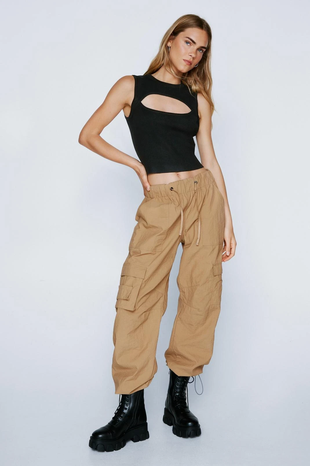 Knitwear to see you through whatever. This tank top comes in a ribbed knit and features a crew neckline, fitted silhouette, and cut out at front. Model is 5’8.5″ and wears a US size 6/UK size 10.