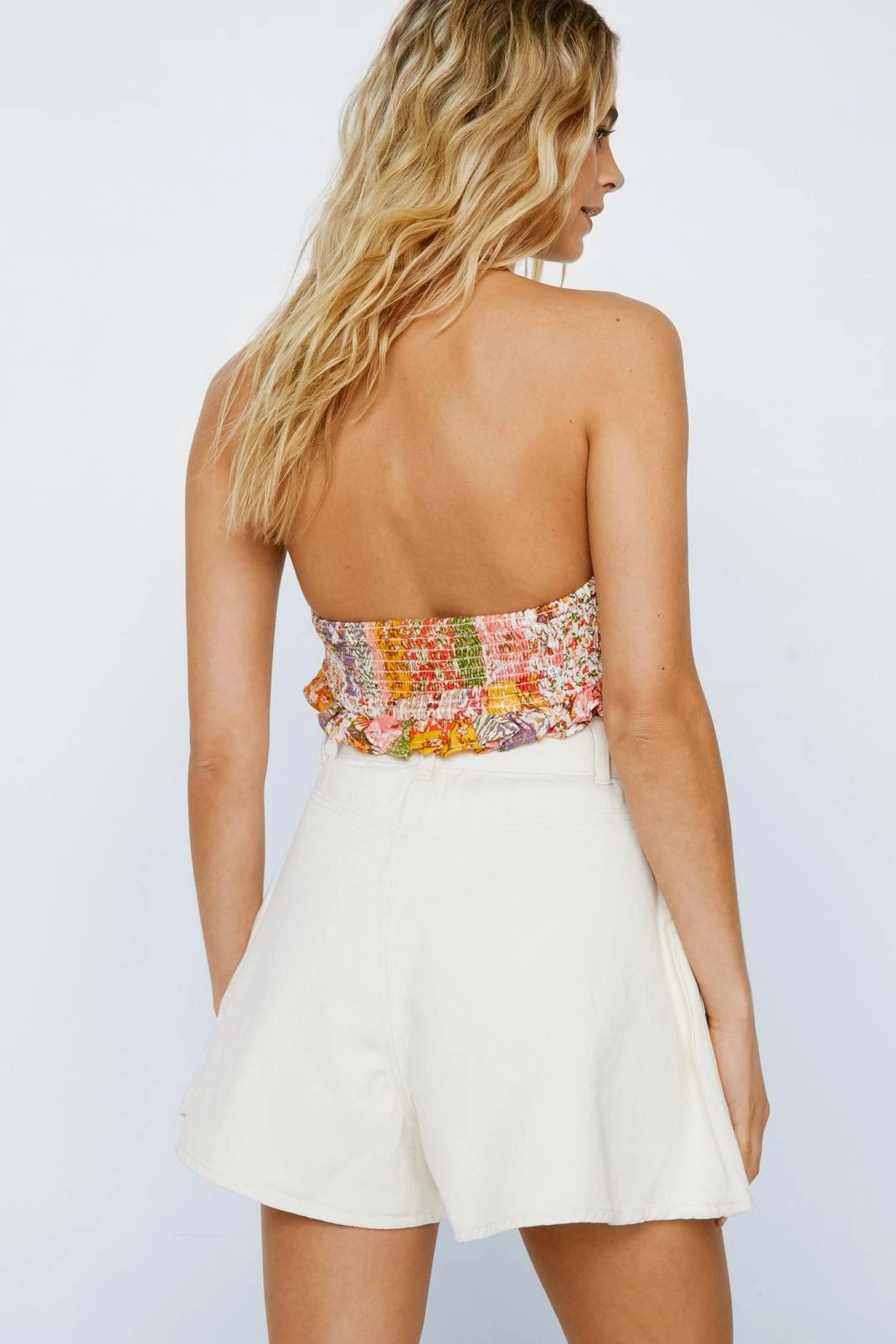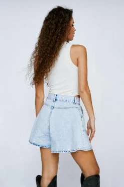 Let your legs out. Feel summery in our denim shorts, made in high quality denim fabric, with a classic Bermuda cut and a flattering high waistline. Wear with a crop top and boots for a look that will take you from summer days out to festival weekends.