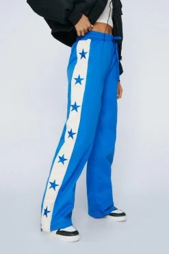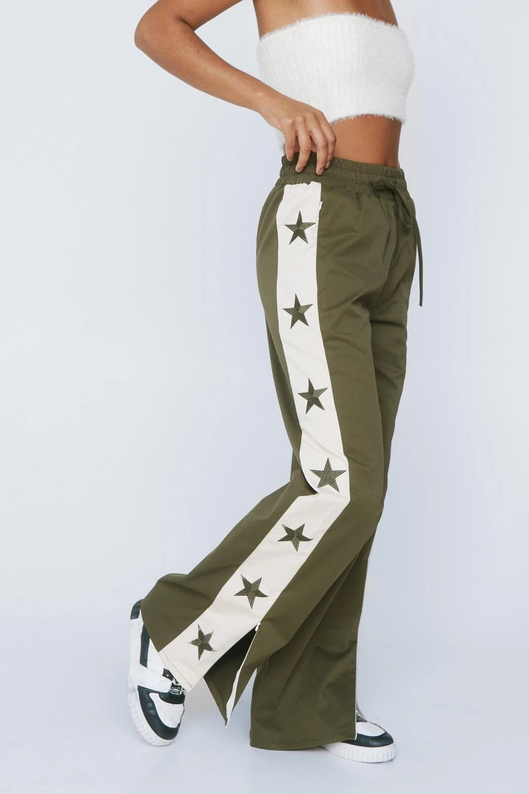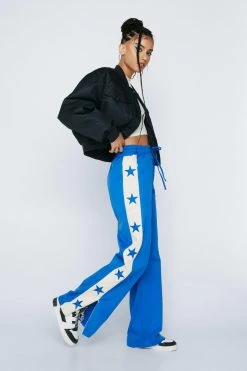 Star power. Contrast against a fluffy crop top, varsity jacket, and chunky sneakers.