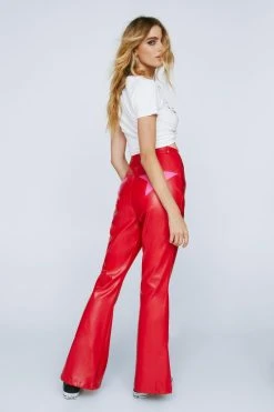 - Faux Leather Star Motif Flared Pants