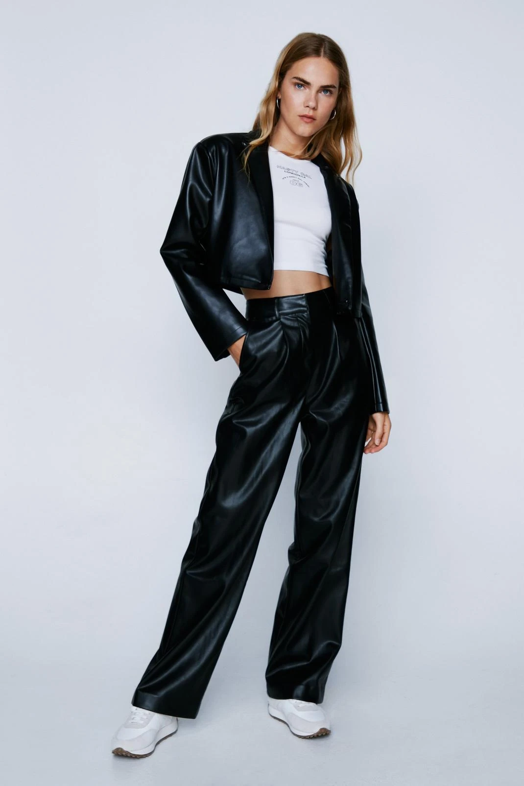 Living in leather. Complete the look by styling with the matching blazer, a crop top, and sneakers.