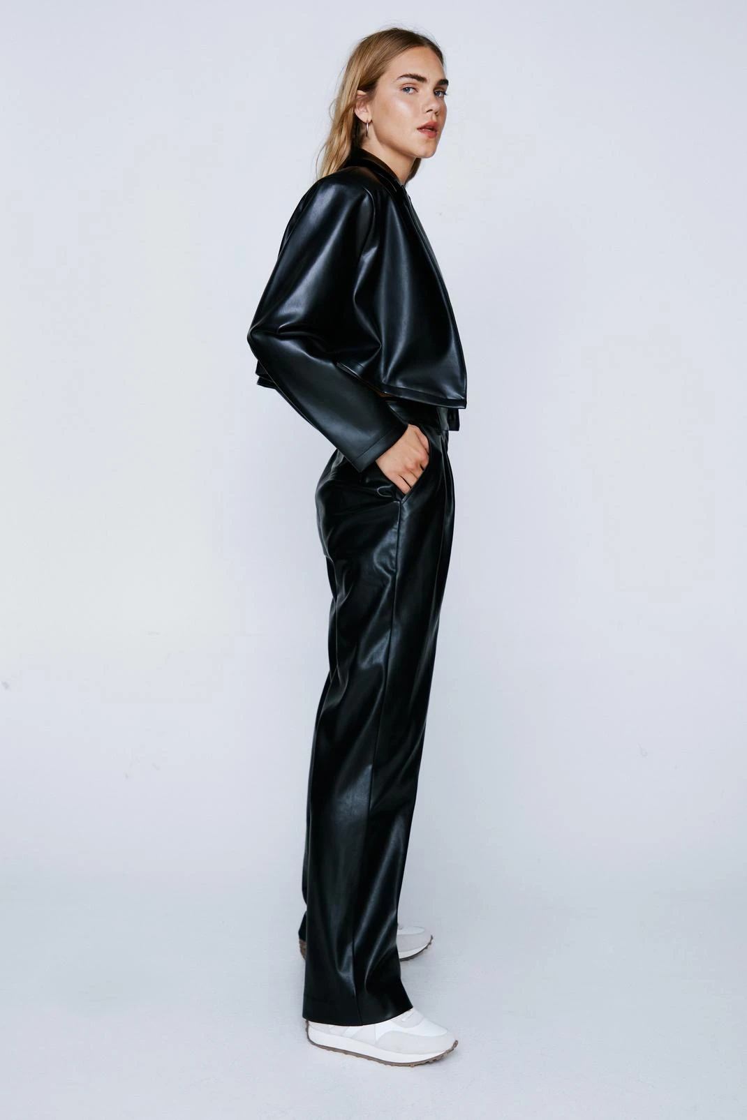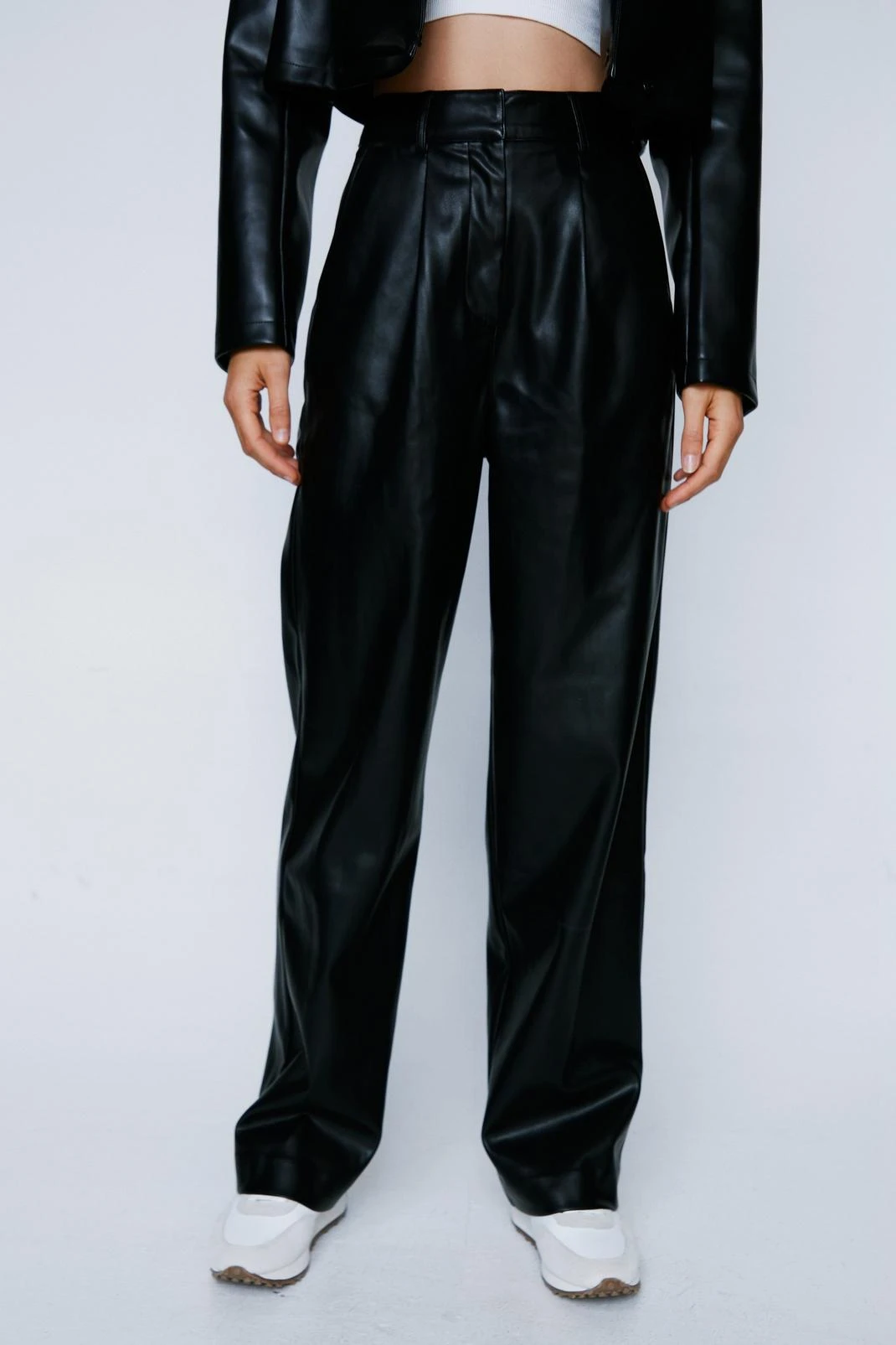 Living in leather. Complete the look by styling with the matching blazer, a crop top, and sneakers.