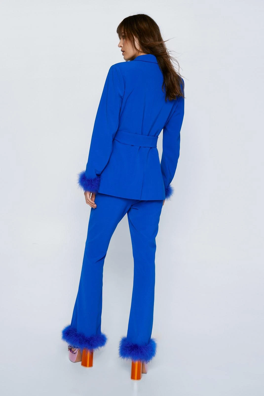 Ruffle some feathers. Our flared pants will have you feeling flirty yet formal with their added feather trims. Style them with the coordinating blazer and strappy heels for party season and beyond.