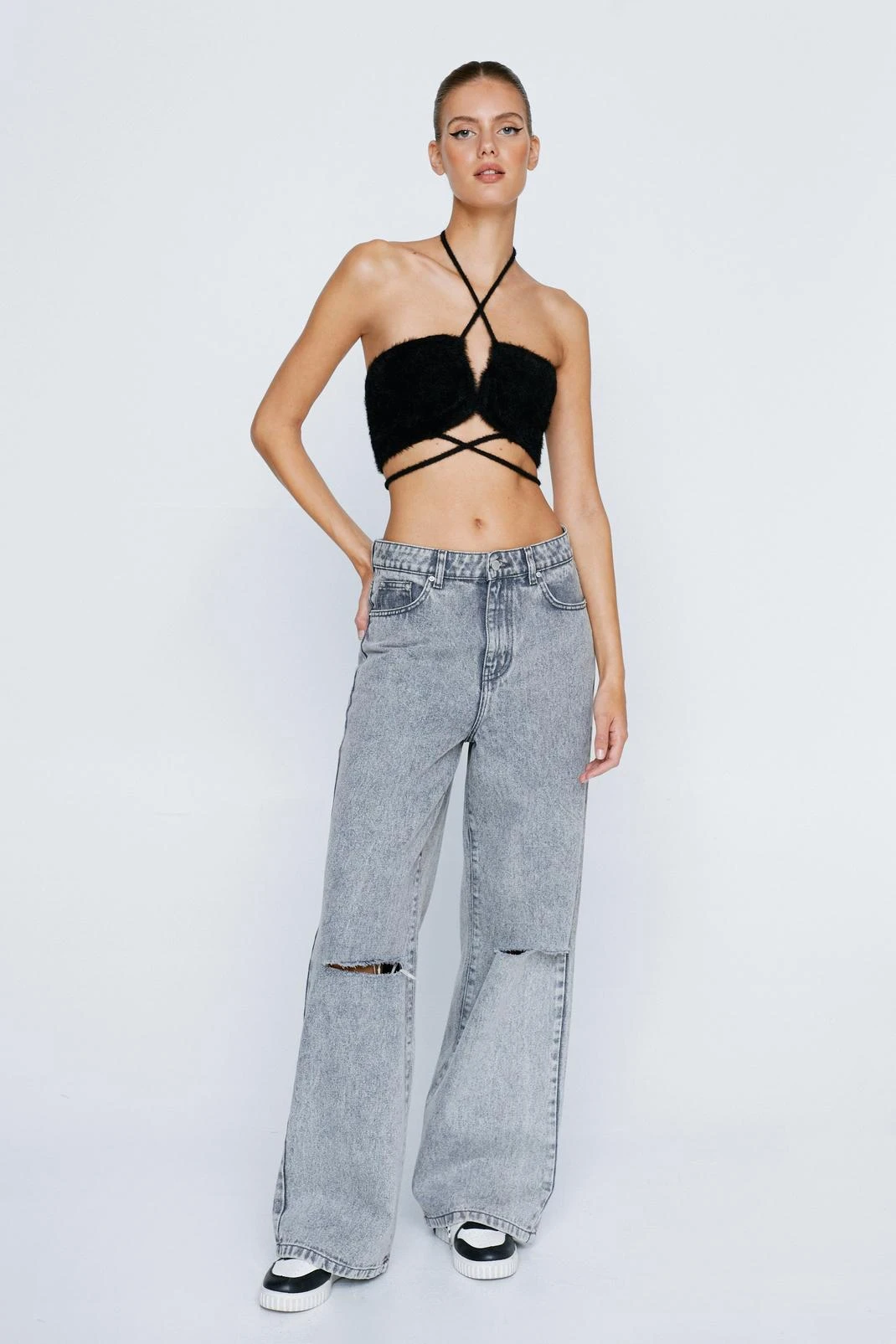 All tied up. Feel confident in our knit bandeau, with a statement strappy design, a flirty halter neckline, and unique fluffy fabric. Dance the night away in our fluffy tie waist bandeau, also known as your new night out staple, perfect for happy hours and disco ball dancefloors.