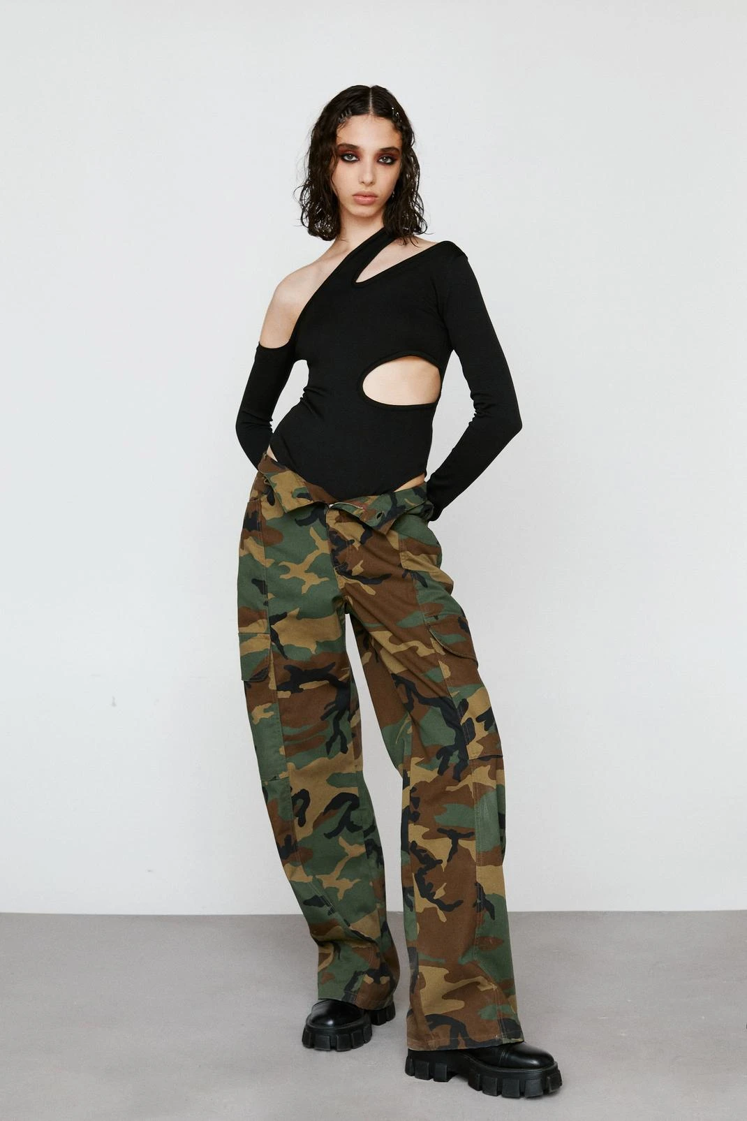 Give them the shoulder. Style with wide leg cargo pants, and sneakers.