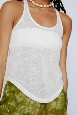 Top priority. Feel cute in our tank top, made in high quality linen look fabric, with a comfortable relaxed fit and a fun racer back design. Pairs well with cargo pants and jeans for a look that will take you from casual days out to coffee catch ups and lunch dates.