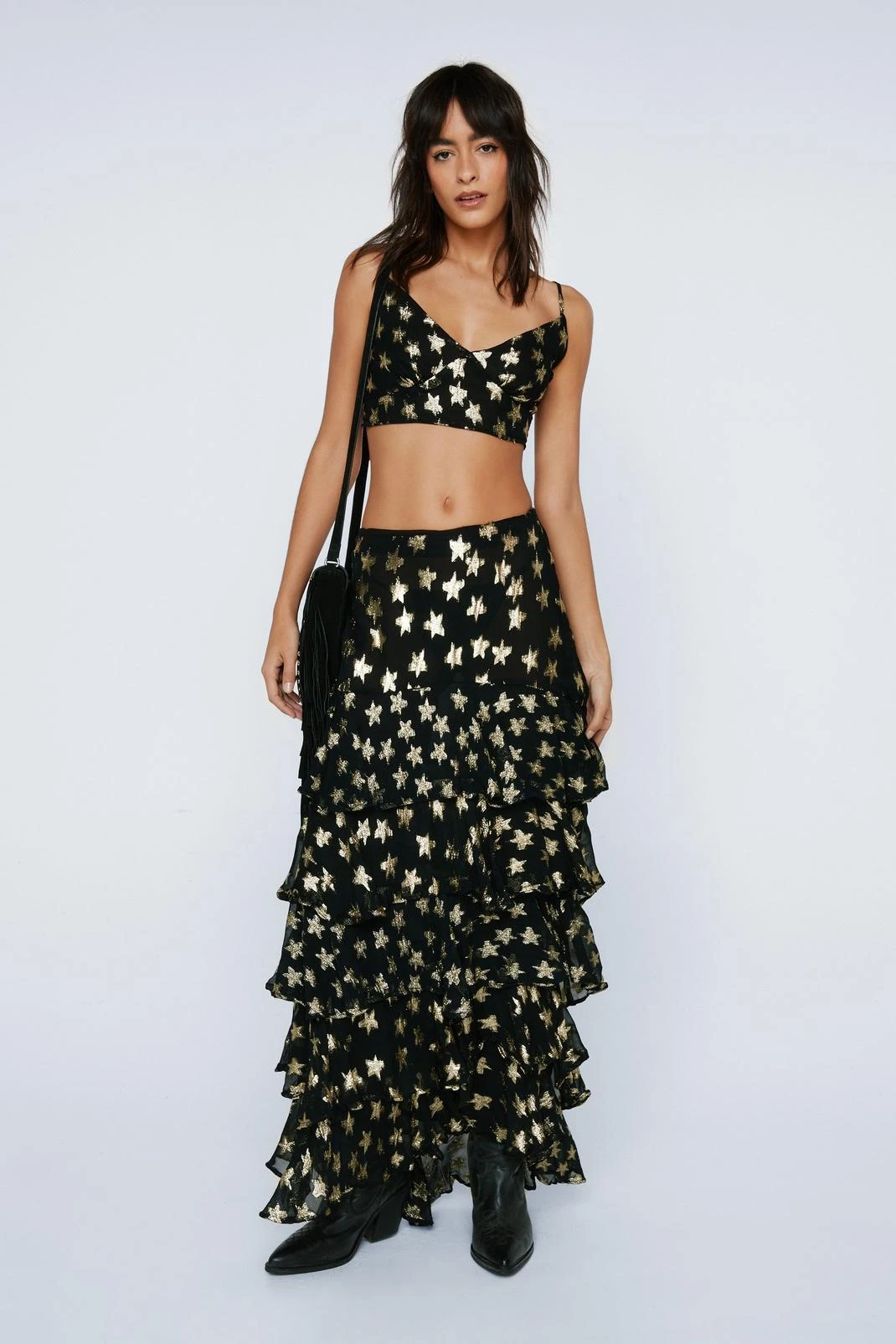 Sunny days ahead. Feel sunshine ready in our crop top, with a flattering cropped length, a stellar deep V neckline, and sparkling star details. Pair it with the matching separates for a look that will take you seamlessly from the poolside to the bar.