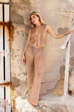 - Metallic Yarn Knitted Flared Pants