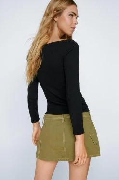 On top of it. Style our staple V neck long sleeve top with a mini skirt or pants.