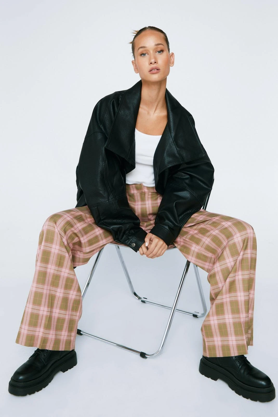 Leg day. Feel elevated when you slip into our wide leg pants. With a classic plaid print in a colorful palette, a comfortable wide leg fit, flattering mid rise waistband, and a formal pleat detail, these pants can easily be paired with a crop top or shirt for a look that will take you seamlessly from day to night. Perfect for dinner dates and drinks, happy hours, and coffee catch ups.