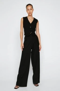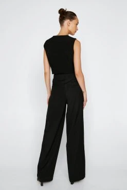 Tailored moments. Create contrast by styling with a sporty racer top, and a pair of sneakers.