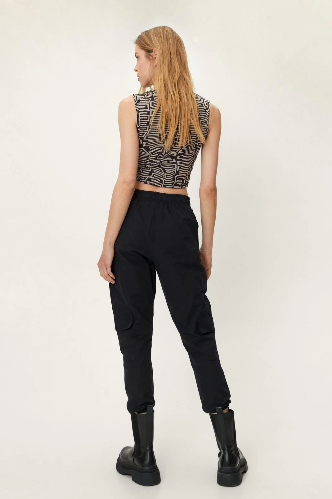 Hard-working hero. These cargo pants are a reworked 90’s staple that come in a thick, woven fabric. They feature an elasticated high waistband, relaxed silhouette, flap pockets at legs, deep pockets at sides, cuffed hems, and pull-on design. Team these practical pants with chunky Chelsea boots and an oversized blazer for sophisticated daytime dates.