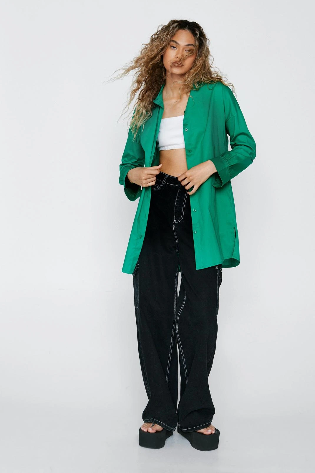 Sartorial styling. Wear with a bandeau top, flatform thong sandals, and wide leg denim jeans.