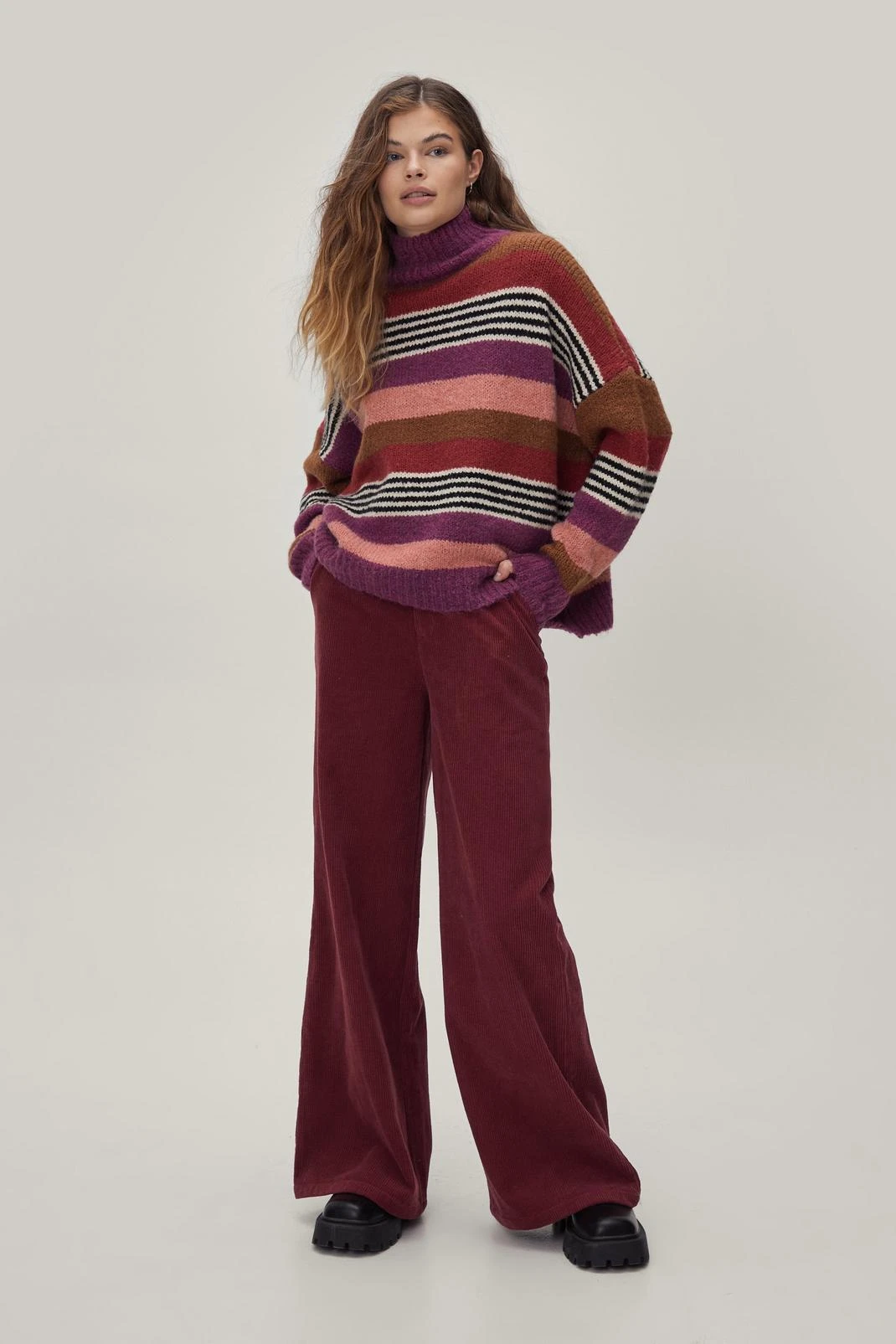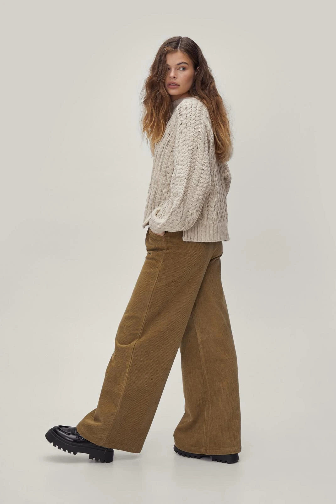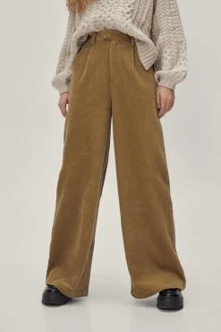 Cut the cord. These pants come in a soft, durable corduroy fabric and feature a relaxed, full-length, wide leg silhouette, zip fly closure, front pockets, belt loops, dart front detailing, a high waisted fit, and a distinct, ribbed corduroy design throughout. Style with a graphic t-shirt and chunky boots.