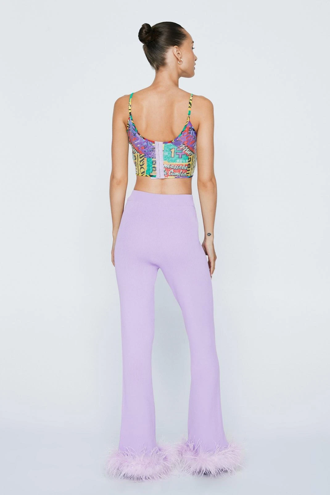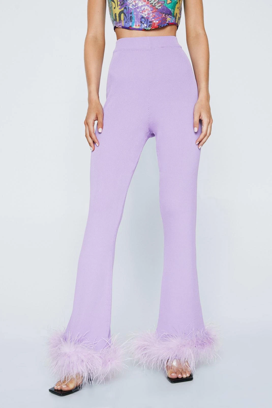 Ruffle a few feathers. Get cozy in our knitted flare pants, and style with a crop for a cute night out fit.