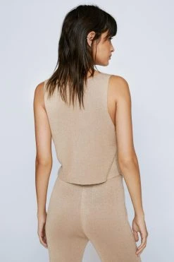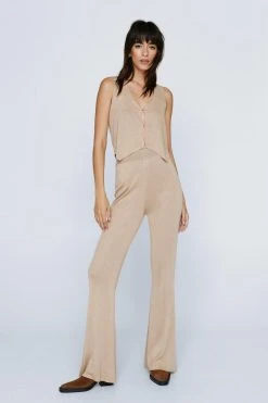Metallic dreams. Our metallic knitted flare pants pair well with the coordinating vest for a matching moment.