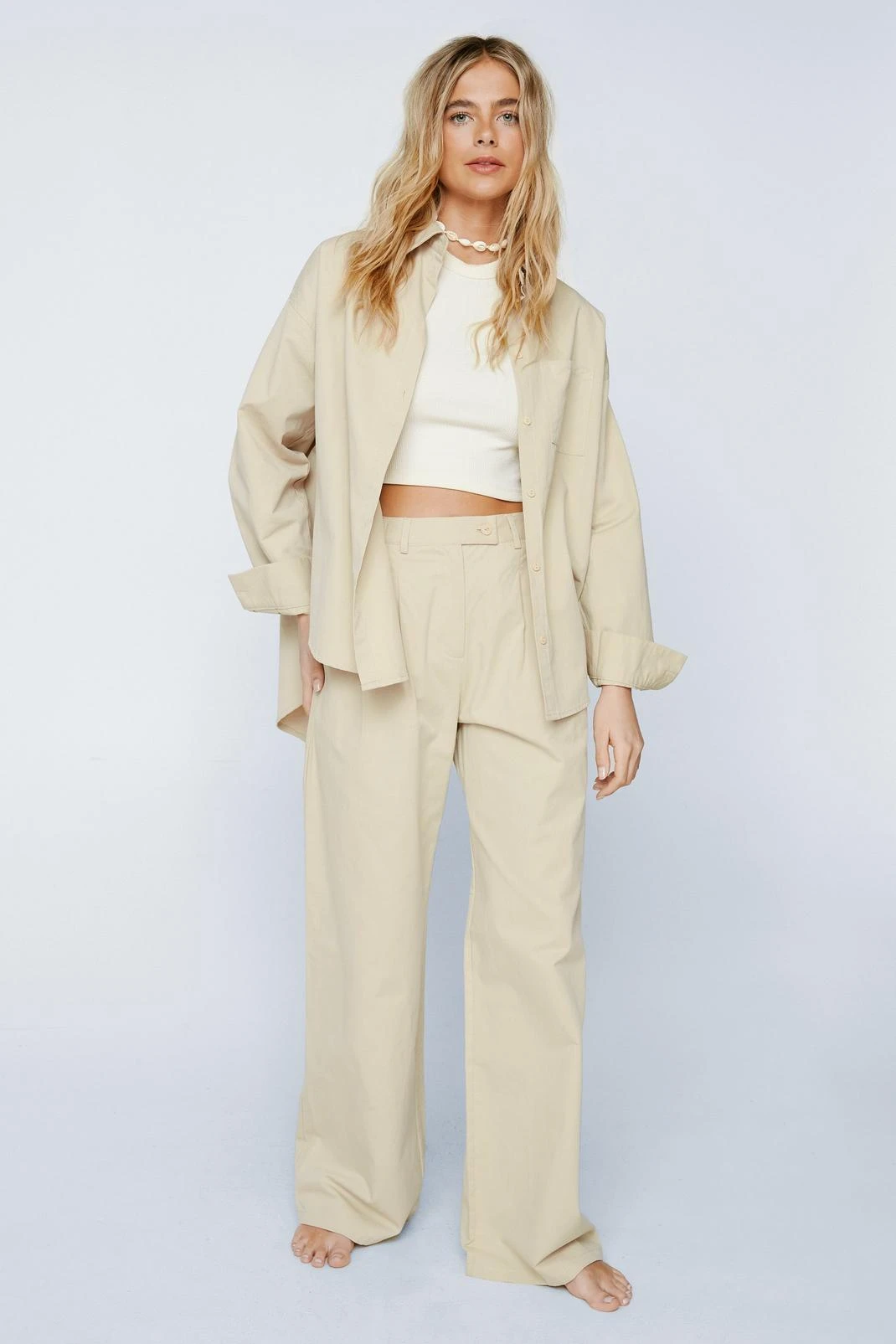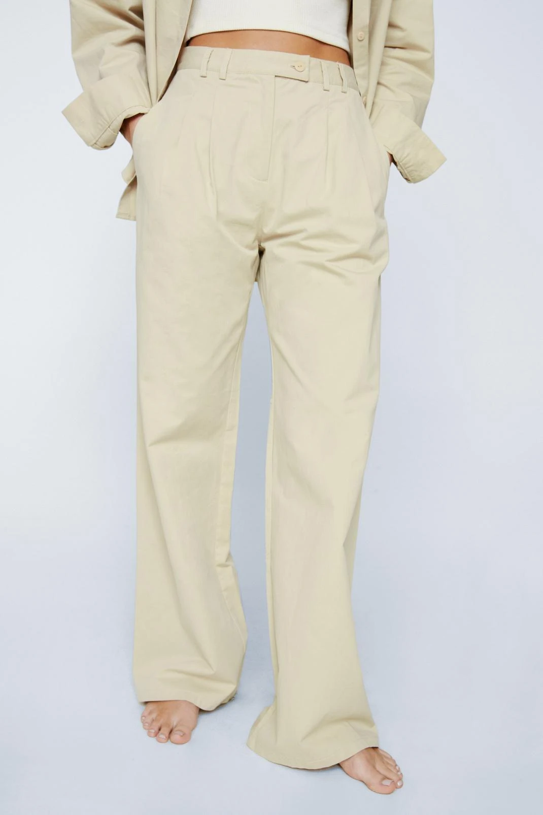Just poplin out. Feel levelled up in our wide leg pants, made in high quality poplin fabric, with an ultra flattering relaxed fit and high waistline. Pairs well with the matching shirt for a co-ordinating look, or with a crop top for a more casual daytime look, perfect for office days which turn to after work dinner and drinks.