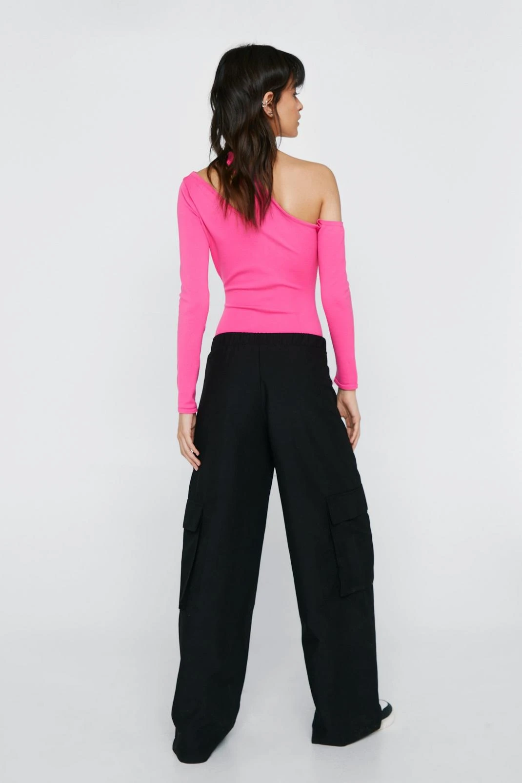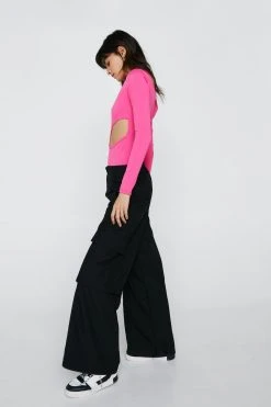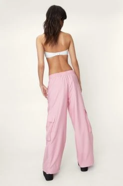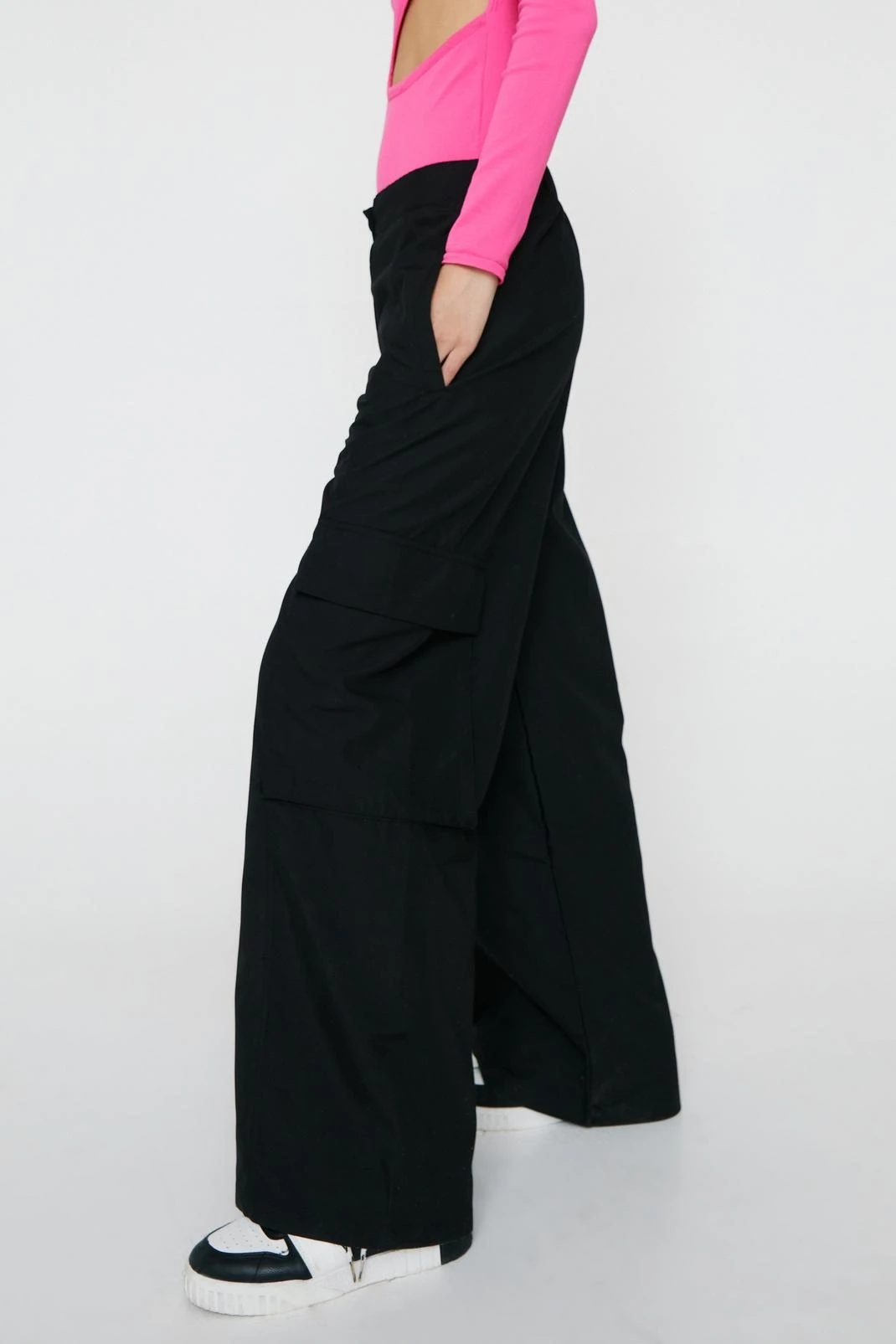 - Wide Leg Pocket Detail Nylon Cargo Pants