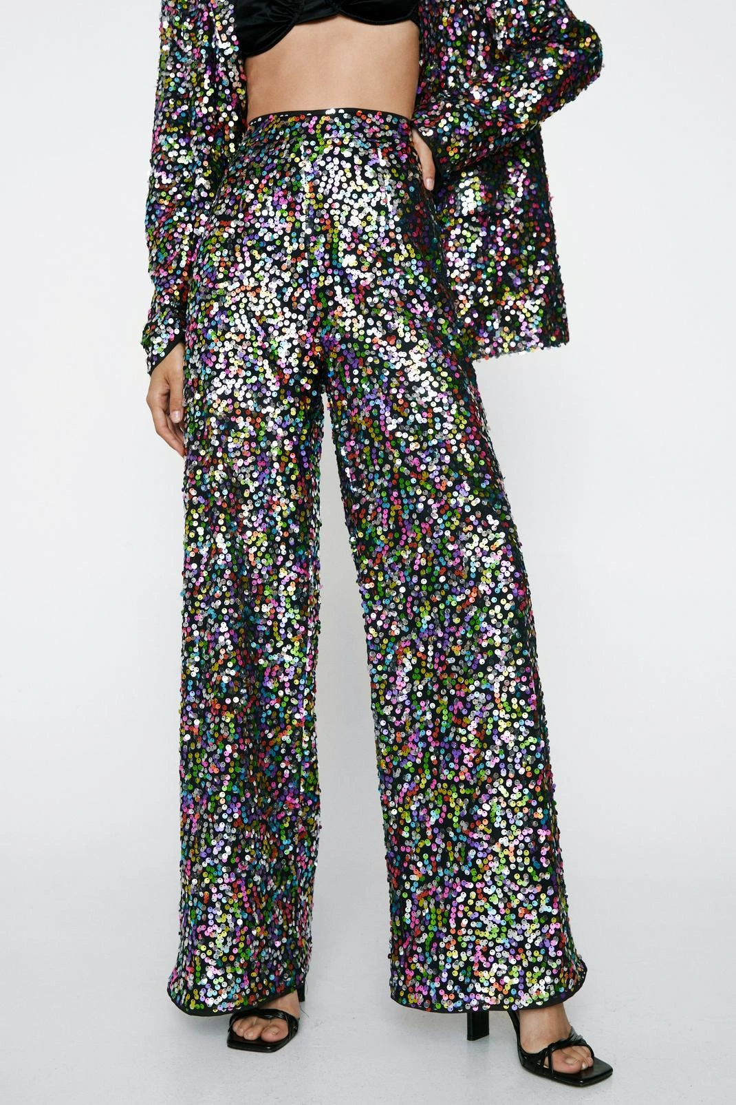 - Rainbow Sequin Wide Leg Pants