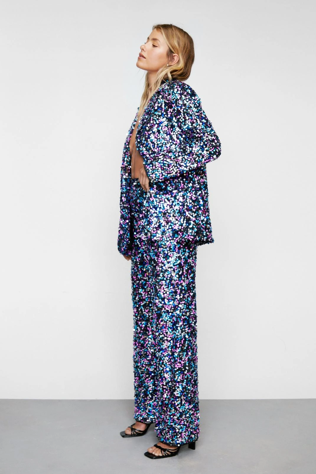 Under the spotlight. Style with matching blazer, a bralette, and strappy heels.