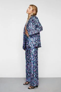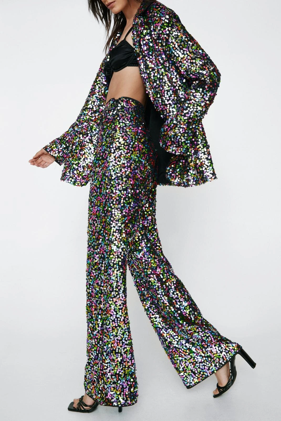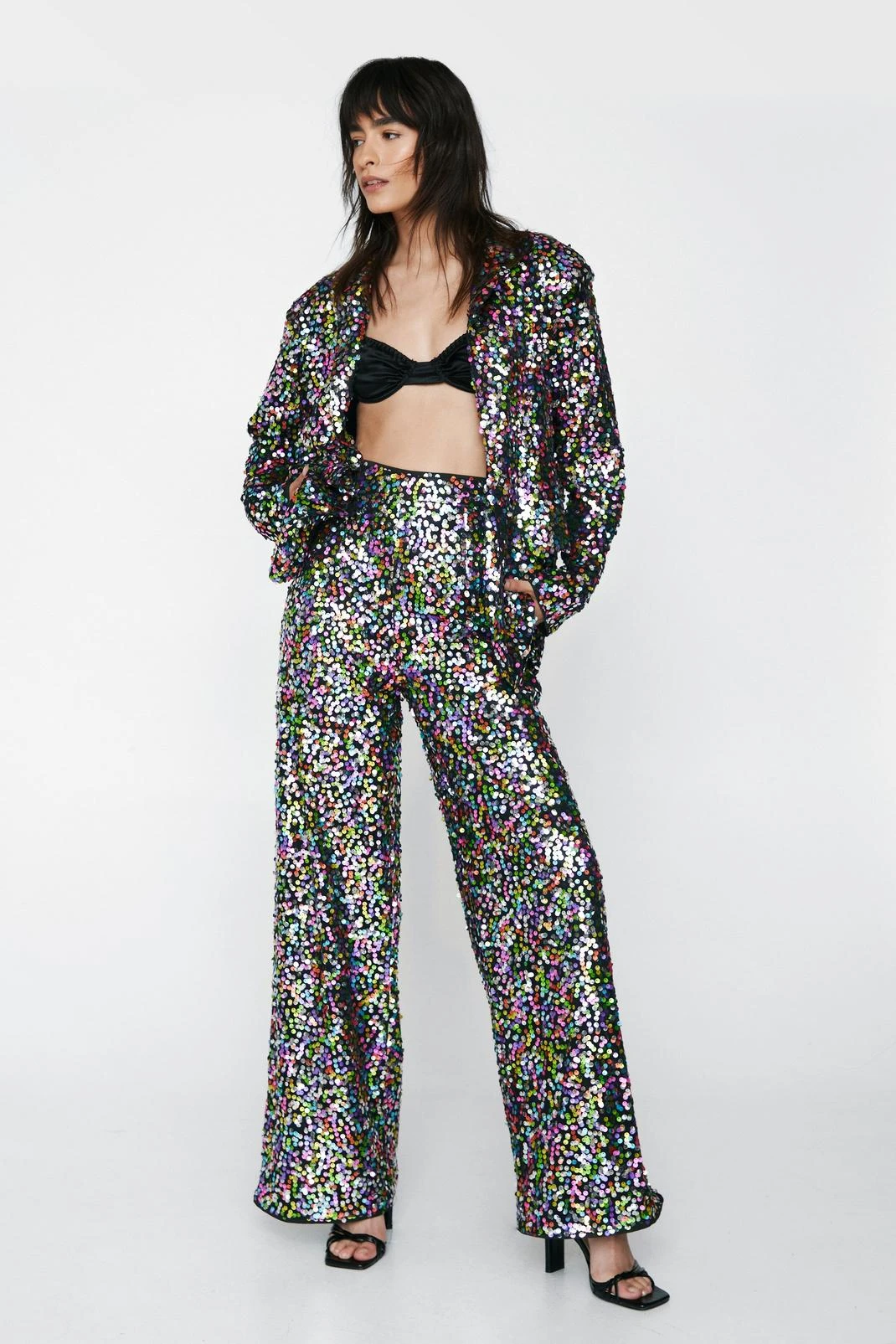 Under the spotlight. Style with matching blazer, a bralette, and strappy heels.