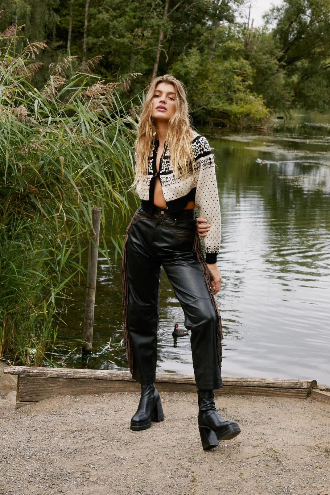 Cowgirl realness. Feel confident in our leather pants, made in high quality real leather, with unique fringed features, and a flattering straight leg fit. Style with a crop top or shirt for an elevated look which will take you from festival weekends to parties and occasions.