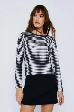 Build your basics. Our long sleeved stripe t-shirt looks great with leather shorts or pants.