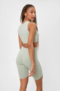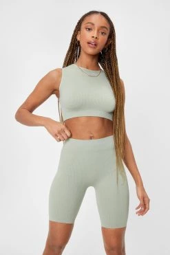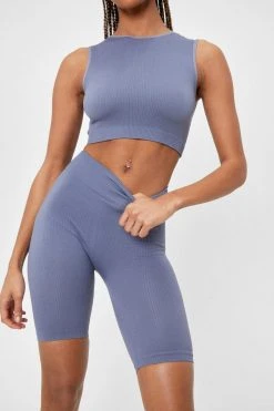 Seamless sets. Feel put-together in our crop top and cycle shorts set, with an ultra seamless design which sculpts the body and snatches the silhouette. Wear under a hoodie for a casual day out look, or layer with a blazer.