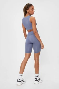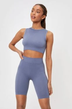 Seamless sets. Feel put-together in our crop top and cycle shorts set, with an ultra seamless design which sculpts the body and snatches the silhouette. Wear under a hoodie for a casual day out look, or layer with a blazer.