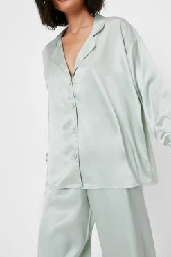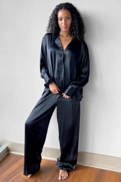 - Style: Satin 3 Pc Shirt Pants and Scrunchie Pajama Set