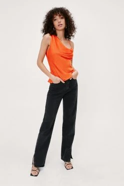 TTYL to our to-do list. This top comes in silky soft satin and features an asymmetric, cowl neckline which drapes elegantly across your décolletage, a relaxed silhouette, and adjustable straps. Looks great with jeans, shorts, a winter coat, whatever you’re feeling that day.