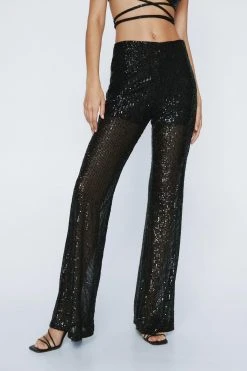 All that glitters. Own the night in our sequin flare pants. Style with a crop top or corset top.