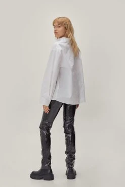 Vinyl vibes. Style with a longline shirt, knitted vest, trench coat, and pointed toe boots.