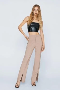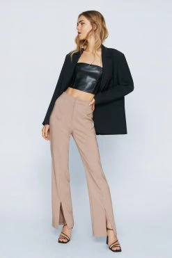 Leg day. Feel fierce in our tapered pants, with a flattering high waistline, a stellar tapered silhouette, and ankle split details. Pairs well with a corset top or blouse for a look that will take you from date nights, to bachelorette nights, to upcoming parties and occasions.