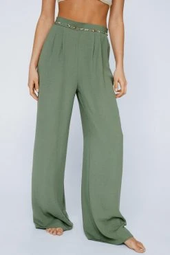 Get a little dressed up. Feel fierce in our wide leg pants, with an ultra flattering wide leg fit, pleat detailing, and a easy pull-up design. Pairs well with crop tops and bralettes for a look that will take you anywhere from vacation nights to office days that turn to dinner and drinks.