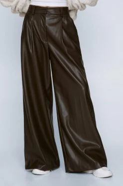 Down here. Feel put-together in our wide leg pants, made in high quality faux leather fabric, with a stellar wide leg silhouette and a flattering high waistline. Style with a crop top or blouse for a look that will take you from day to night, whether you’re heading to the office or out for date night.