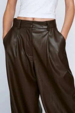 Down here. Feel put-together in our wide leg pants, made in high quality faux leather fabric, with a stellar wide leg silhouette and a flattering high waistline. Style with a crop top or blouse for a look that will take you from day to night, whether you’re heading to the office or out for date night.